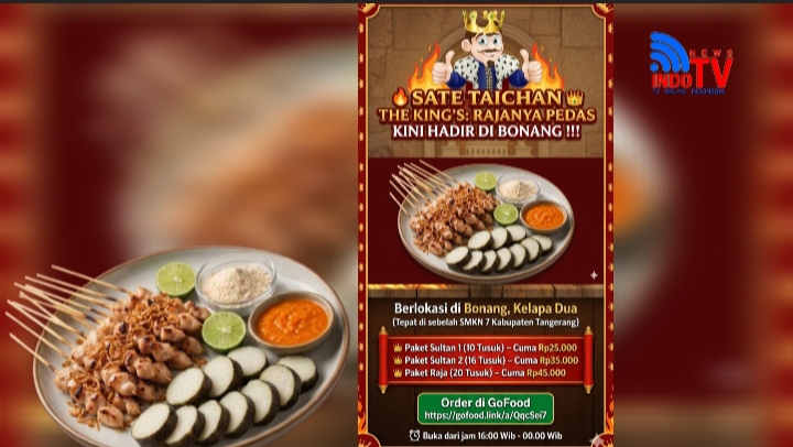 Warga Kelapa Dua dan sekitarnya, siapkan lidah kalian! Telah hadir Sate Taichan The King’s, destinasi kuliner baru yang siap memanjakan pencinta pedas dengan daging ayam…