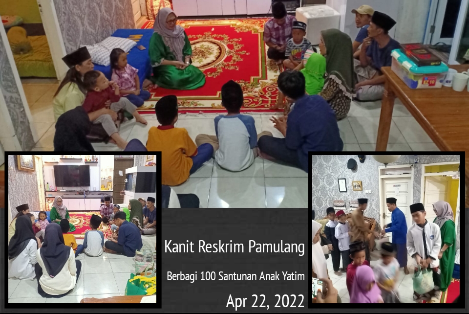Kab. Tangerang, indotvnews co.id – Dalam rangka menyambut Hari Raya Idul Fitri 1443 H, AKP. ERWIN SUBEKTI, SH, Kanit Reskrim Pamulang memberikan santunan kepada 100 orang anak yatim, bertempat di kediamannya, Pakuhaji, Kab. Tangerang, Jum’at (22/04/22).