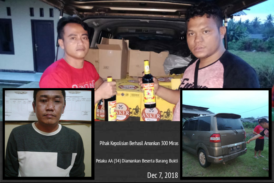 Dalam siaran pers kepada media Kabid Humas Polda Banten Akbp Edy Sumardi P, Sik membenarkan telah ditangkap dan diamankan 1 Unit Mobil Apv No. Pol. : B 1956 NMW berikut Miras Anggur Merk Kuda Mas sebanyak 300 Botol dengan kandungan Alkohol 14 Persen tanpa dilengkapi ijin Jl.Raya Simpang Malingping”.terangnya