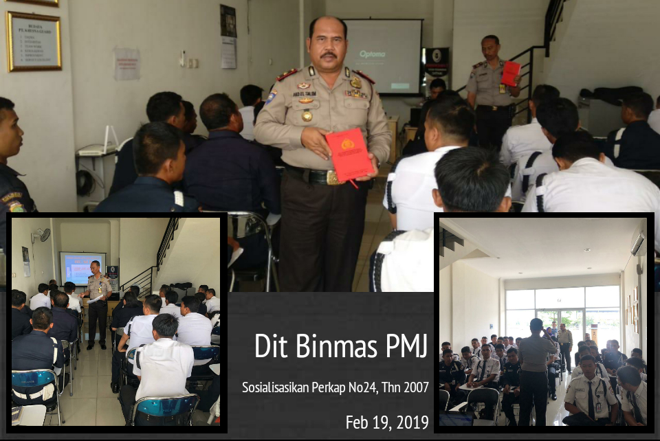Giat Sosialisasi sistem manajemen pengamanan di pimpin KOMPOL ABDUL SALIM, SH Kasi Was Jas Pam Pmj , beserta dua (2) anggt pers unit tim wasjaspam AKP PURWONO BADUKI dan BRIPTU AGUNG