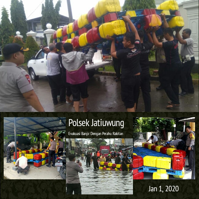 Mengantisipasi adanya banjir, sebelumnya Kapolsek Jatiuwung memerintahkan semua perwira untuk nyari barang-barang bekas seperti palet plastik, jerigen, tambang dan cat, guna merakit perahu, Hal diungkapkan AKP. ZAZALI HARIONO SH