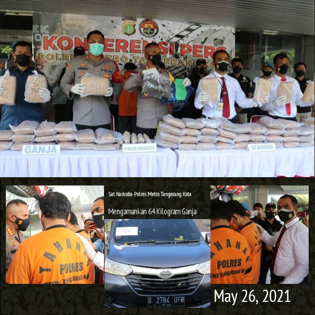 Tangerang, indotvnews.co.id – Rabu 5 Mei 2021, Satuan Reserse dan Narkoba Polres Metro Kota Tangerang berhasil menggagalkan pengiriman barang haram narkotika jenis ganja seberat 64 kilogram.