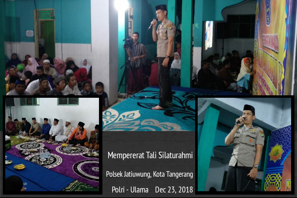 Dalam rangka merealisasikan program Kepolisian Polres Metro Tangerang Kota, Kanit Binamas IPTU FAHYANI, SH serta didampingi Brigadir TOTO. M sambangi tokoh agama sekaligus menghadiri Maulid Nabi Muhammad SAW yang bertempat di ponpes Ummul Rodhiyah Kp. Doyong RT. 03/04 Kel. Alam jaya Kec. Jatiuwung Kota Tangerang, sabtu ( 22/12/18).