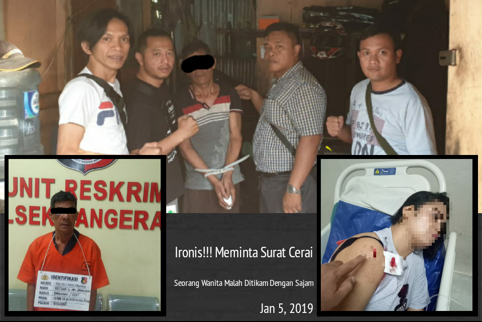 Lanjut Kapolsek Kejadian berawal saat korban meminta surat cerai, pelaku kesal dan menusuk korban sebanyak 3 (tiga) kali dengan sebilah pisau yang sudah disiapkan sebelumnya dan mengenai lengan kanan, pundak kanan dan punggung bagian kanan tubuh korban”.terang