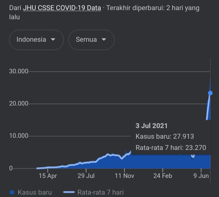 Angka ini merupakan penambahan kasus harian tertinggi sejak awal pandemi terjadi di Tanah Air.