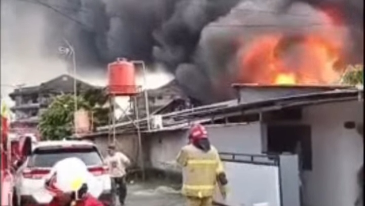 Kobaran api yang muncul secara tiba-tiba tersebut dilaporkan merambat dengan cepat ke bangunan di sekitarnya, memicu kepanikan warga setempat.