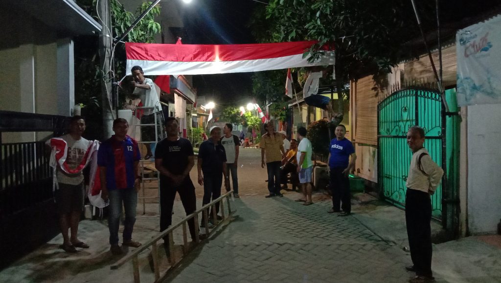 Tangerang | indotvnews.co.id – Menyambut hari kemerdekaan republik Indonesia ke 74 warga Rt10/14 menggelar pemasangan sang saka merah putih secara serentak yang di koordinir Aswin (ketua Rt) melalui Sohib (sekRt), sabtu (10/8/19)