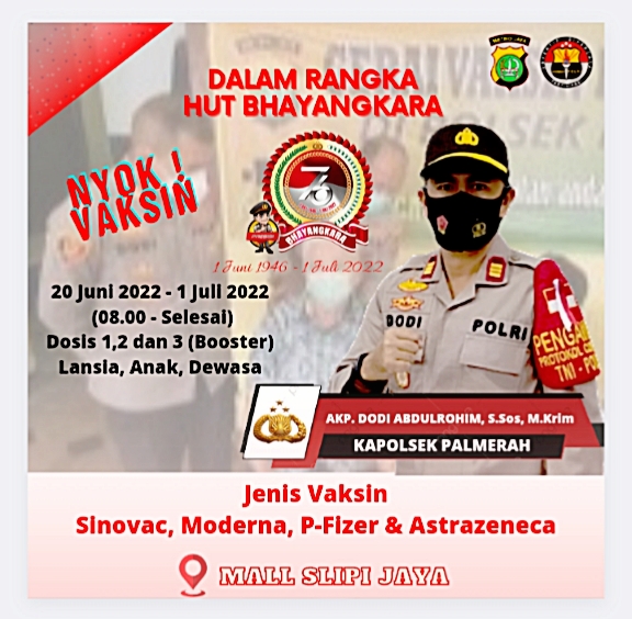 “Nyok Warga Jakarta khususnya warga Palmerah dan Sekitarnya, Mari sukseskan serbuan vaksinasi dalam rangka memeriahkan HUT Bhayangkara Ke-76” pungkasnya.