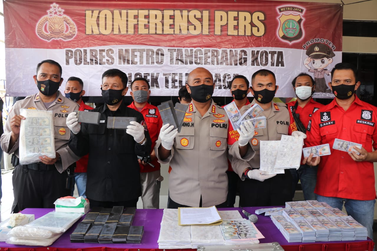 Dalam kesempatan Press Release, Rabu (22/07/20) di Mako Polsek Teluk Naga Jl. Raya Kampung Melayu, Kampung Melayu Timur, Teluknaga, Tangerang, Kombes Pol Sugeng Hariyanto mengungkapkan “Percetakan dollar palsu sudah dilakukan sejak tahun 2018 di kawasan Jakarta Barat”.