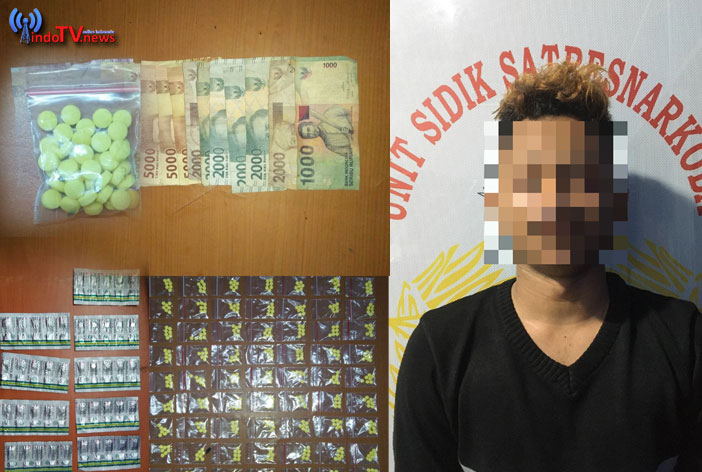 PANDEGLANG – BANTEN | indotvnews.co.id – Diduga kedapatan edarkan obat-obatan terlarang tanpa izin edar KR (19) pemuda asal Aceh dimankan Satresnarkoba Polres Pandeglang di sebuah toko, di Kampung Cibintarok RT.005 RW.003, Desa Pangkalan, Kecamatan Sobang, Kabupaten Pandeglang, Senin (23/9/2019).