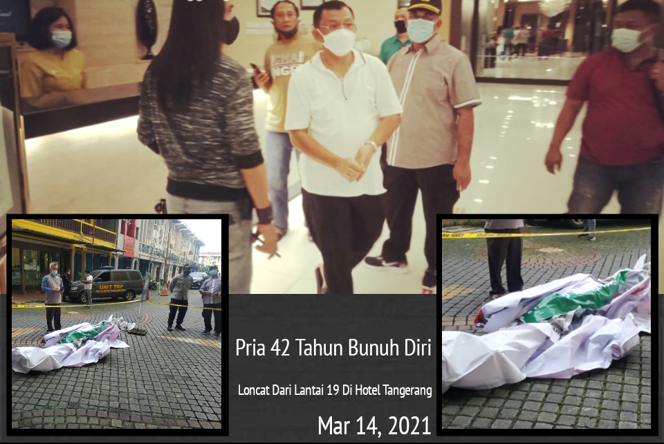 “Jatuh nya korban Himawan Soedijono (42) dugaan sementara korban meninggal bunuh diri Loncat dari Lt 19”.