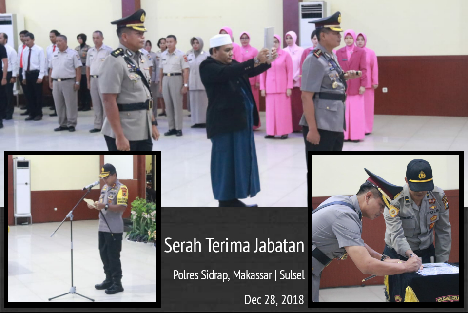 “Demi Allah saya bersumpah bahwa saya selaku pejabat Kepolisian Republik Indonesia akan setia dan taat sepenuhnya kepada Pancasila, Undang-Undang Dasar Negara Republik Indonesia tahun 1945, dan Negara Kesatuan Republik Indonesia,” ujar Kapolres Sidrap saat mengucapkan sumpah jabatan yang dipimpin oleh Kapolda Sulsel.