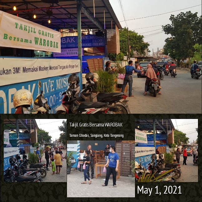 Warung Roti Bakar (Warobak) yang terletak di Taman Cibodas, Sangiang, Kecamatan Periuk, Kota Tangerang, tidak ingin ketinggalan moment tersebut, dengan mengadakan Program Takjil Gratis selama bulan Ramadhan.